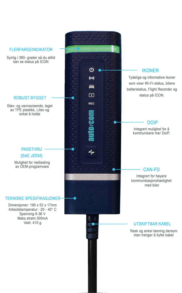 DrivePro leveres også med Autocom ICON med PRO-licens, som åbner op for kodning på de fleste biler. Enheden forbindes mellem bilen og DrivePro 2-testeren og kommunikerer med OEM-producenterne via internettet.